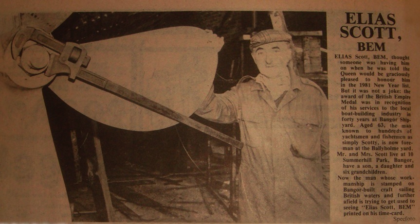 Elias Scott - known to all as ‘Scotty’ - foreman at the Shipyard Company yard in Ballyholme was awarded the British Empire Medal in 1981
