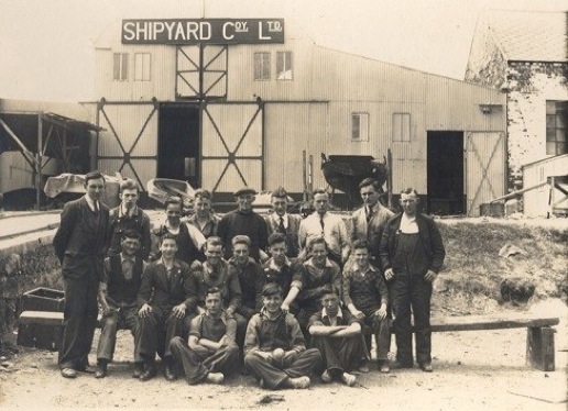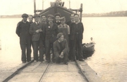 Launch day at the Bangor Shipyard - Robert Slater is third from left