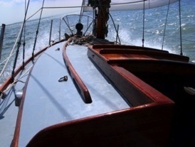 Tim maintained Salna meticulously, and made a host of improvements to the boat. He updated the electronics, installing an electronic log and GPS system (although the beautifully-made original Hecta radio direction finder is still in Salna’s equipment locker). The gas cooker was replaced with the much safer and more economical Taylors paraffin stove, and the hopelessly unreliable Stuart Turner petrol engine was replaced with a sturdy Nannidiesel. Tim also put in a Sailspar furling headsail, making Salna much more sailable single-handed.