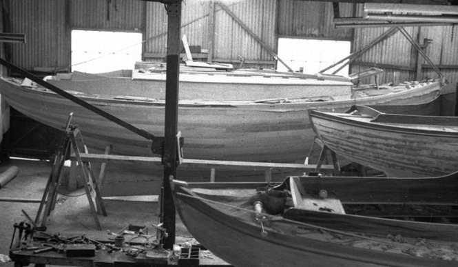 The yard was very busy with Admiralty work during World War II, but Bertie declined a government offer to cover the entire premises with two or three large sheds - he said he thought the money could be better spent elsewhere in the war effort. Most of the upper part of the yard was already a building shed, while the rest was open, with tracks and dollies for the moving of boats down to the single slipway, which was across the Seacliff Road and extended to low water springs on a curving rack through rock and sand.