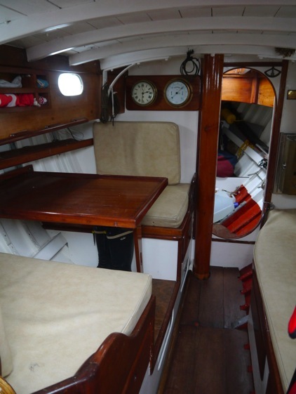 The accommodation was outstanding for its era, indeed it still seems remarkably good. Starting from aft, the auxiliary under the companionway shows a proper Scottish regard for engineering best practice - it is virtually horizontal, a requirement occasionally ignored by some designers and builders, who feel they can get away with engine angles which disregard the manufacturers’ basic requirements. The only modification which springs to mind is that the propeller aperture could be taken almost entirely out of the hull deadwood - if the rudder could be given a straight leading edge, it would greatly improve manoeuvrability under engine when going ahead.